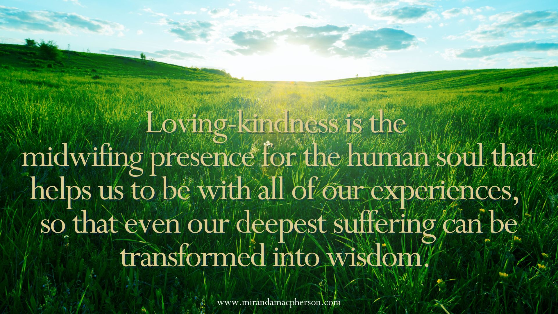 Today, I want to focus on the aspect of loving kindness. I think it’s pretty obvious to you, as it is to me, that for something beautiful to be born in and amidst the intensity of our times it needs and wants to be grounded in a consciousness that is both unified and full of loving-kindness.