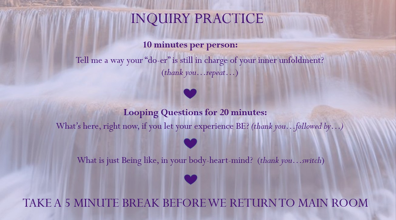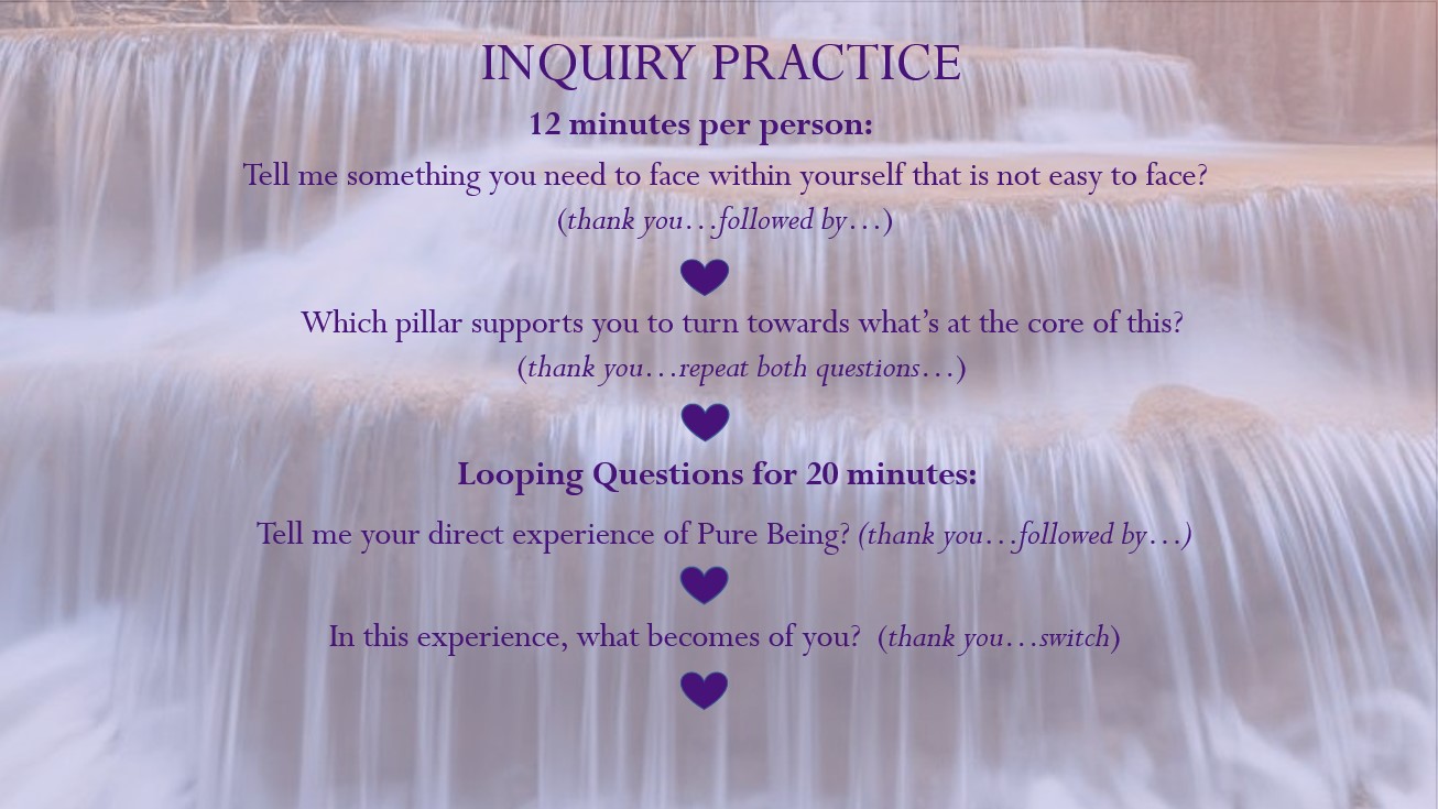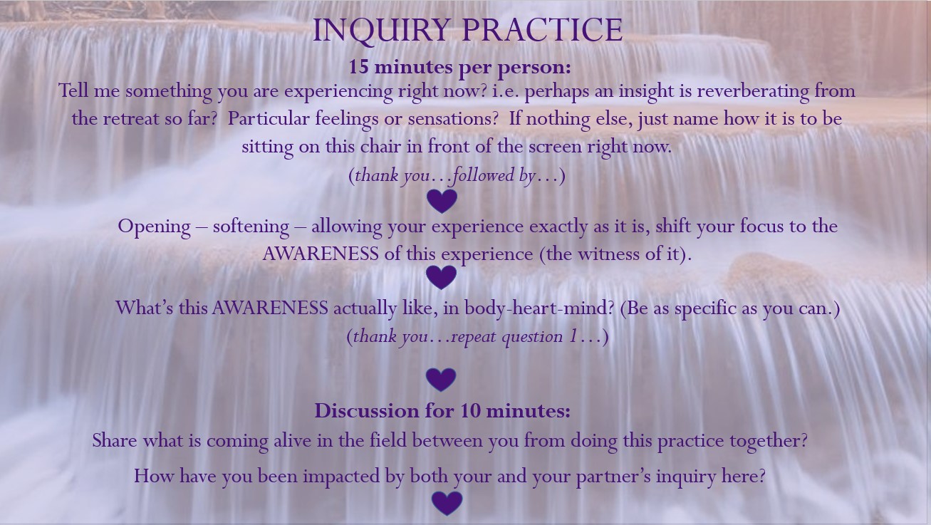 Scroll to the bottom of the page if you are NOT a Sangha member and are looking for an inquiry partner for ongoing practice.