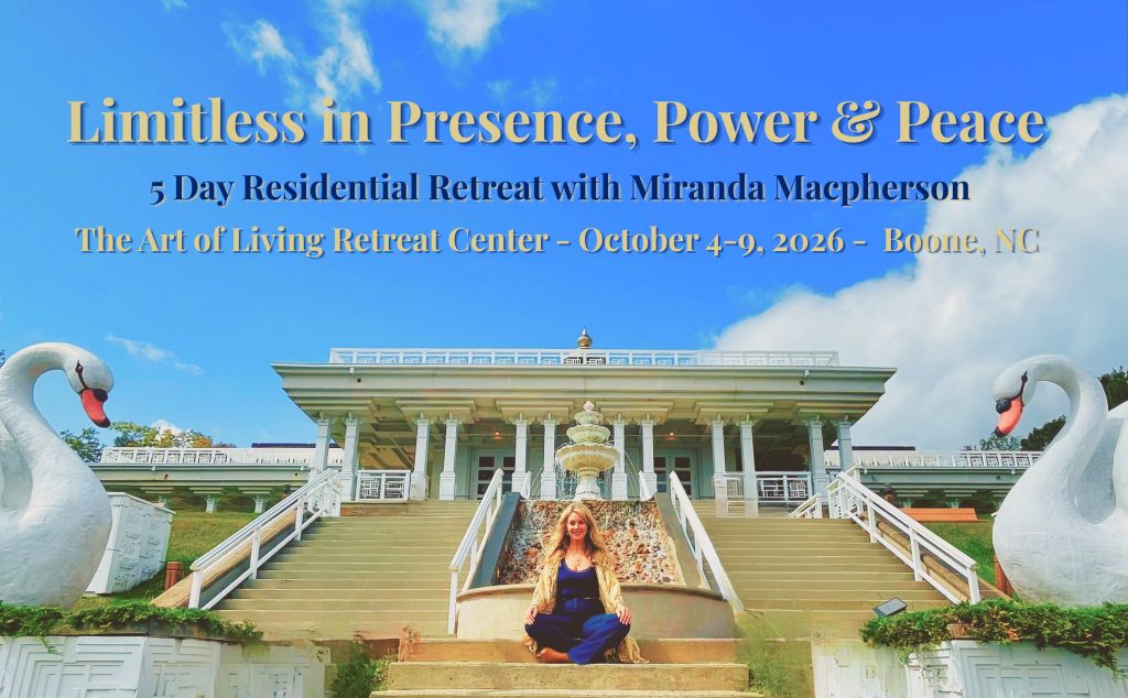 You are invited to join Miranda and a small group of participants for a deeply transformative residential 6 day retreat full of profound spiritual teaching, supported self-inquiry, meditation, chanting and prayer in the stunning fall setting of the highly acclaimed Art of Living Retreat Center, Boone, North Carolina.